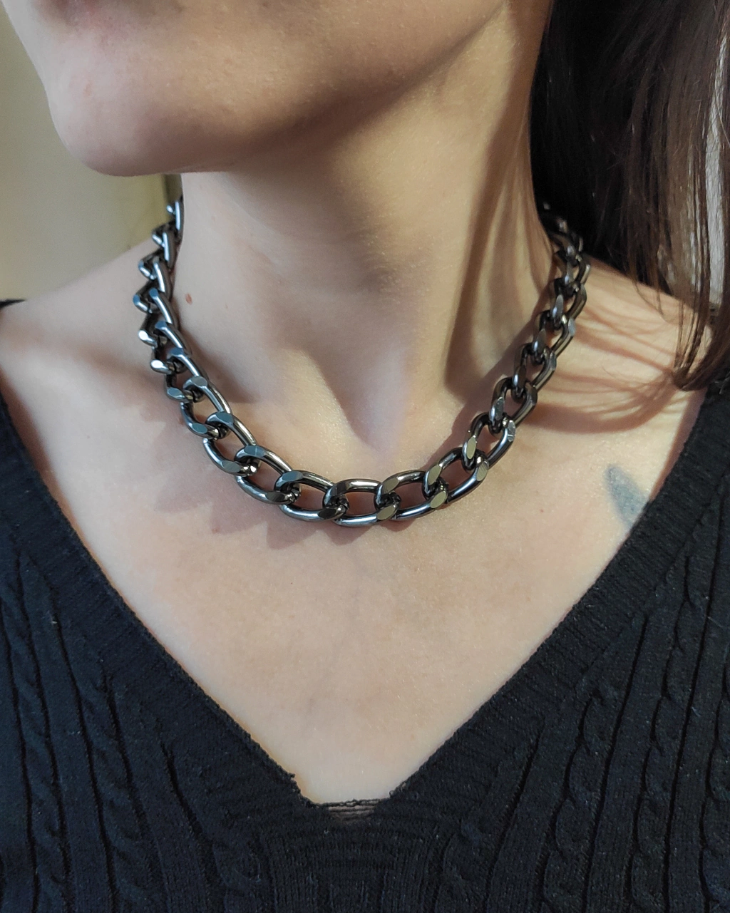 A Gargantilha Corrente Grafite 'Power' é mais do que um acessório; é uma fonte de confiança. Com ela, você assume o controle e se torna a personificação do poder e da atitude. É uma peça não pede licença; ela conquista a atenção por si só.